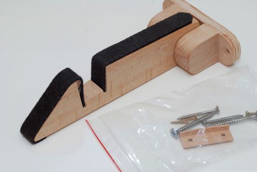 Eine Version der Türsicherung mit dunklem Klebefilz und Montagezubehör.